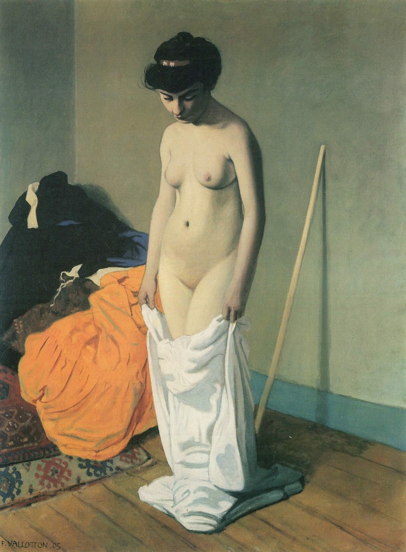 Le tableau "Nu debout, se dévêtant" de Felix Valletton: tableau à l'huile réplique, peint à la main et de grande qualité.