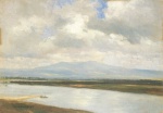 Le tableau "Monts du Taunus et rivière " de Eugen Bracht: tableau à l'huile réplique, peint à la main et de grande qualité.
