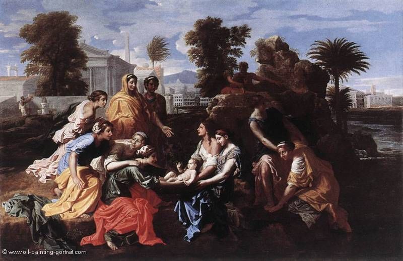 Le tableau "Moïse trouvé" de Nicolas Poussin: tableau à l'huile réplique, peint à la main et de grande qualité.