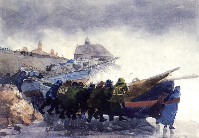Le tableau "Observant la tempête" de Winslow Homer: tableau à l'huile réplique, peint à la main et de grande qualité.