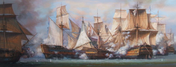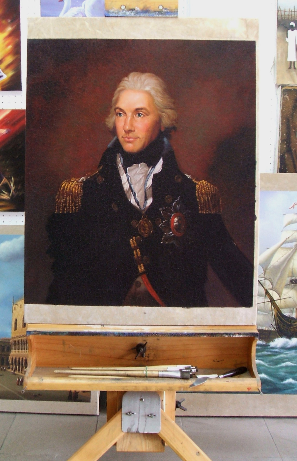 Commande spéciale "Seeschlacht von Admiral Nelson" réalisé à la technique du craquelé 170 x 80 cm |